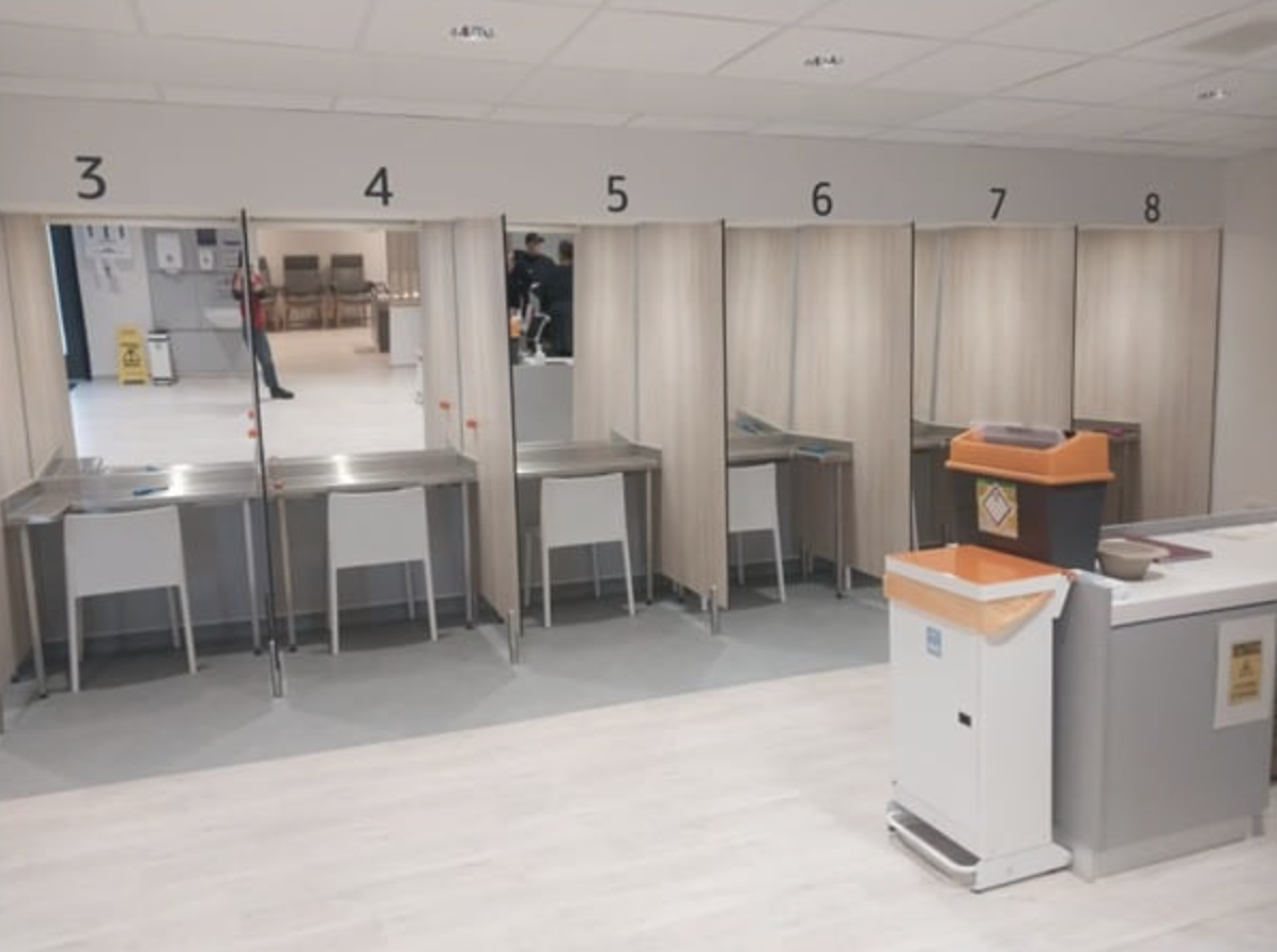 The location is also deliberate: the facility sits close to existing public injecting sites, its building is already familiar to many who use the service, and it is attached to a diamorphine prescribing service, so anyone who wants to can be linked directly into treatment. The using space – where people are allowed to inject – gets people through the door and once inside, they can access a range of health and housing support, and more.